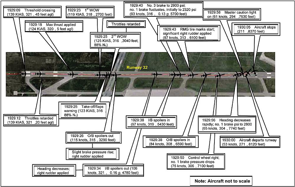 - Heavy rainfall before and during the landing resulted in a 4–6 mm layer of water contaminating the runway.