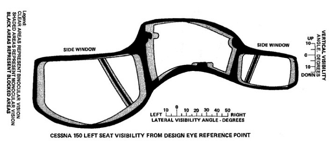 The high-wing Cessna 150 aircraft has known vision limitations brought about by the pilot seat position and fuselage/cockpit dimensions. For example, during turns, the wings restrict the upper fields of view to the sides. The general aviation community regards formation flying in high-wing aircraft as far more challenging; it introduces greater risk of collision than in low-wing aircraft.