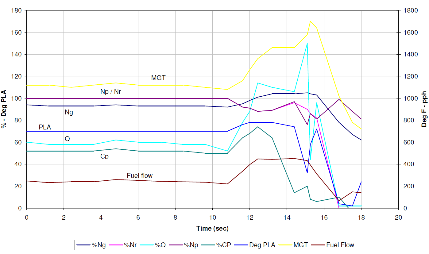 - engine control inputs (power-lever angle on the fuel control unit, torque, and collective pitch angle);