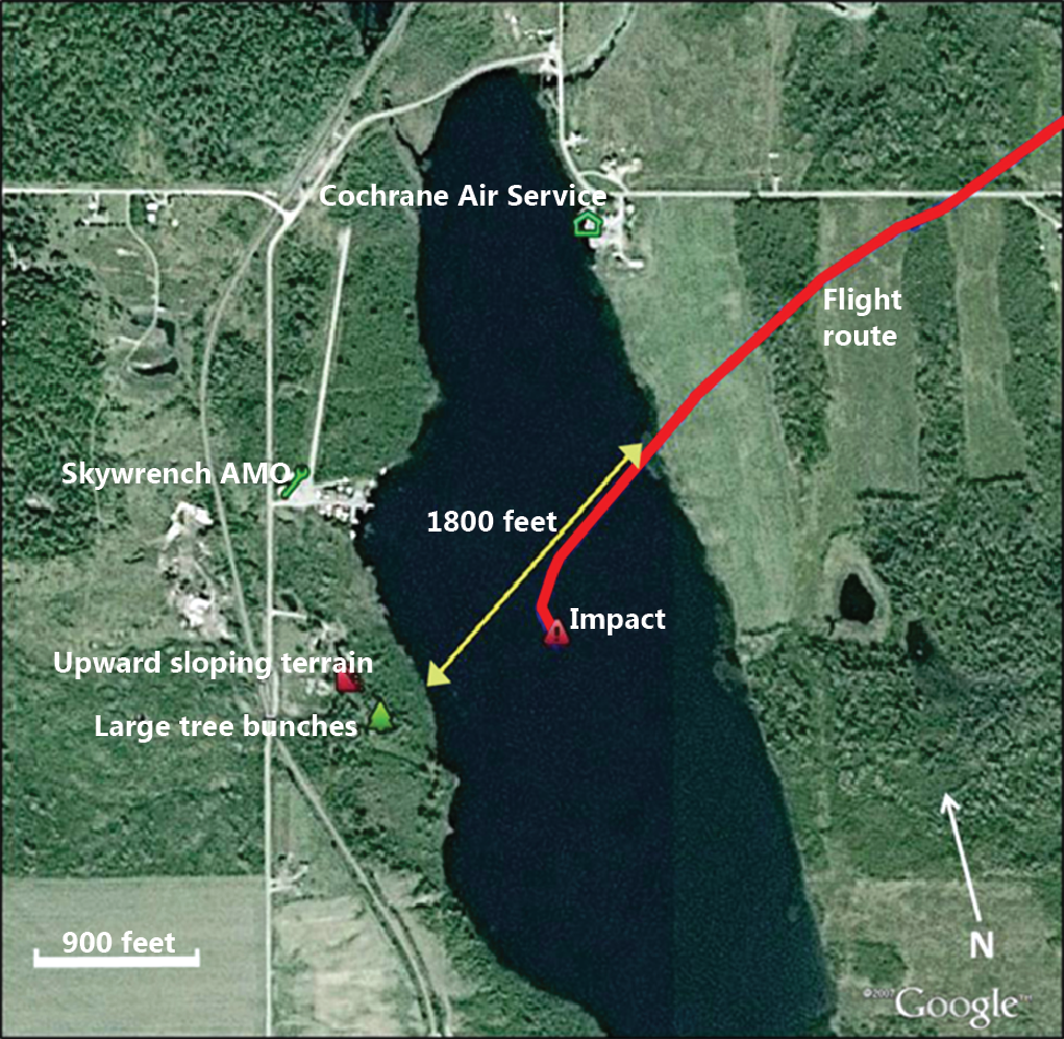The Ontario Ministry of Natural Resources has several environmental monitoring stations in the area, which recorded weather conditions at the time of the occurrence. At 1250, sensors recorded wind speeds near Edgar Lake of 10 knots, gusting to 17 knots. Winds in Cochrane at 1100 were recorded as 8 knots, gusting to 23 knots, and increasing at 1400 to 17 knots, gusting to 34 knots.