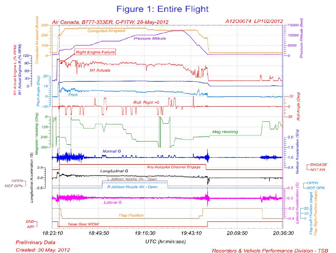 The digital flight data recorder (DFDR) (Honeywell part number [P/N] 980-4700-042 and serial number [S/N] 16829) was downloaded by the operator, and the raw binary file was forwarded to the TSB Laboratory. The two-hour cockpit voice recorder (Honeywell P/N 980-6022-001 and S/N 03723) was shipped to the TSB Laboratory for downloading. The quick access recorder data was downloaded when the aircraft was at the gate. The system automatically transmitted a file in proprietary format, which was received by the operator's wireless ground link server. This data was also transferred to the TSB Laboratory.