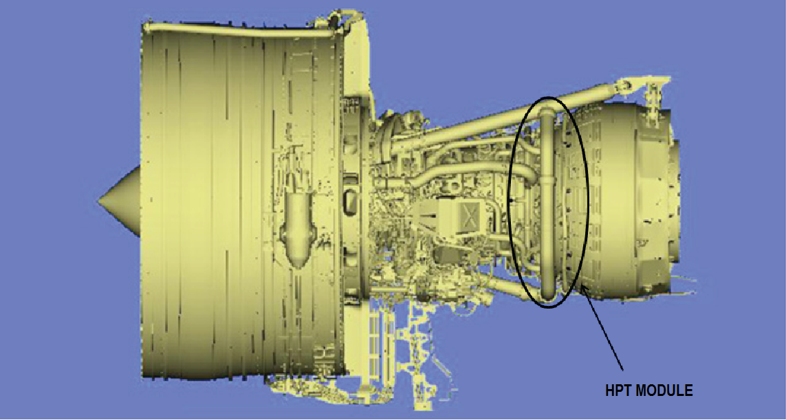 The propulsorFootnote 5 core was seized by several HPT stage 2 nozzle fragments jammed in different locations, which prevented the core from rotating freely. There was no indication of a bird strike or component failure forward of the HPT module (Figure 1).