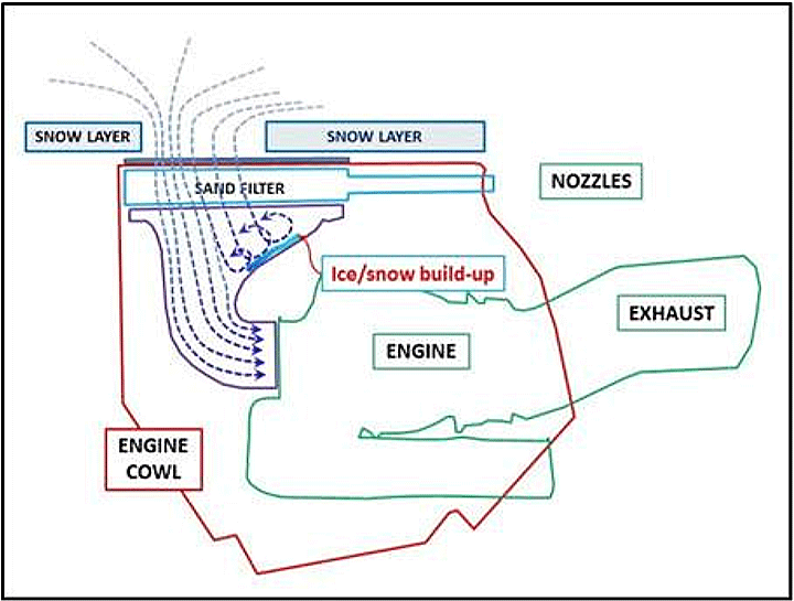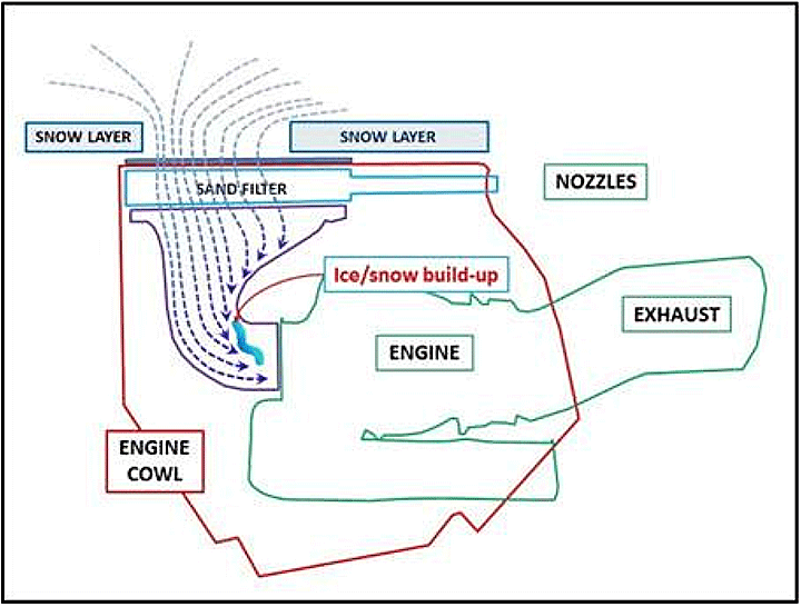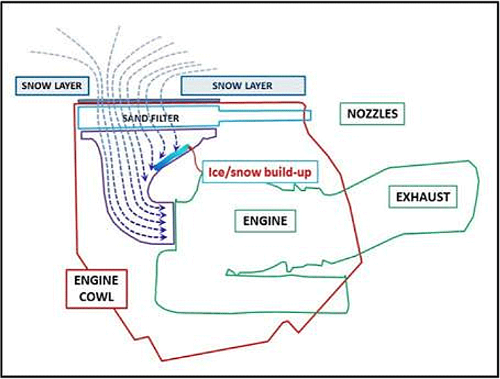 - As a result of a few accidents during winter 1985 that were due to insufficient snow removal, reminds of the importance of intake cleaning before takeoff