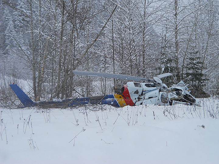 At 1351 Pacific Standard Time, Air Five, the Royal Canadian Mounted Police Eurocopter AS 350 B3 helicopter (registration C-FMPG, serial number 3082), with only the pilot on board, took off from an open field near Cultus Lake, British Columbia, on the outskirts of the city of Chilliwack. The helicopter slowly travelled nearly 260 feet to the north, and then hovered at about 80 feet above the ground for approximately 30 seconds. Suddenly, a distinct noise and a puff of grey/white vapour from the engine area occurred, followed by a rapid loss of rotor revolutions per minute. The helicopter descended quickly, and within seconds, landed heavily on the snow-covered terrain. Upon impact with the ground, the helicopter fuselage collapsed and the fuel tank ruptured. There was no fire. The helicopter was destroyed, and the pilot was fatally injured. The emergency locator transmitter activated and was detected by the search and rescue satellite system. The accident occurred in daylight at 49°04′13″ N and 121°56′08″ W, at an elevation of about 650 feet above sea level.