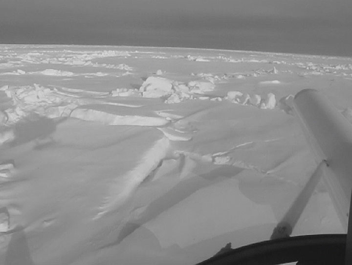 On the following day, 09 September 2013, at 1638,Footnote 4 flight CCG364 took off from the CCGS Amundsen with the pilot, the master and a scientist on board. The scientist, seated in the passenger seat on the left, was equippedFootnote 5 to conduct ice thickness measurements. The master, seated behind the scientist, was on board to conduct an ice reconnaissance mission in order to determine the CCGS Amundsen's best route to the next scientific station located west of Banks Island. Northerly winds had moved the ice to the southern portion of M'Clure Strait, resulting in close- to very close-pack old iceFootnote 6 along the western north shore of Banks Island. An ice service specialistFootnote 7 is normally on board Canadian Coast Guard (CCG) vessels assigned to most arctic operations, including scientific missions. However, there was none for this mission.