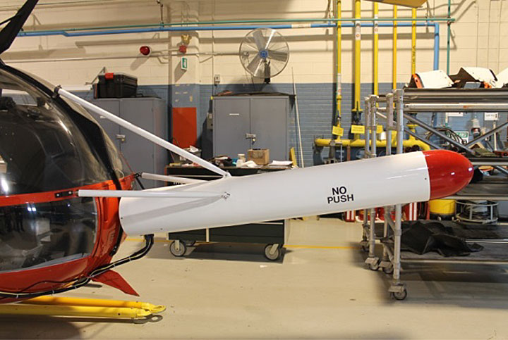 The helicopter was equipped with an ice survey system, which included a forward-facing boom (ice probe), a computer system, and interconnecting cables. The ice probe, which housed a laser altimeter and sensors for measuring the depth of snow and ice, was attached to the nose of the helicopter (Photo 3). The computer system connected to the ice probe was retained in the rear seat and recovered with the wreckage. Only pieces of the ice probe were recovered; none of the housed equipment was retrieved.