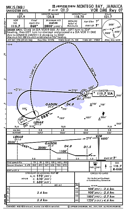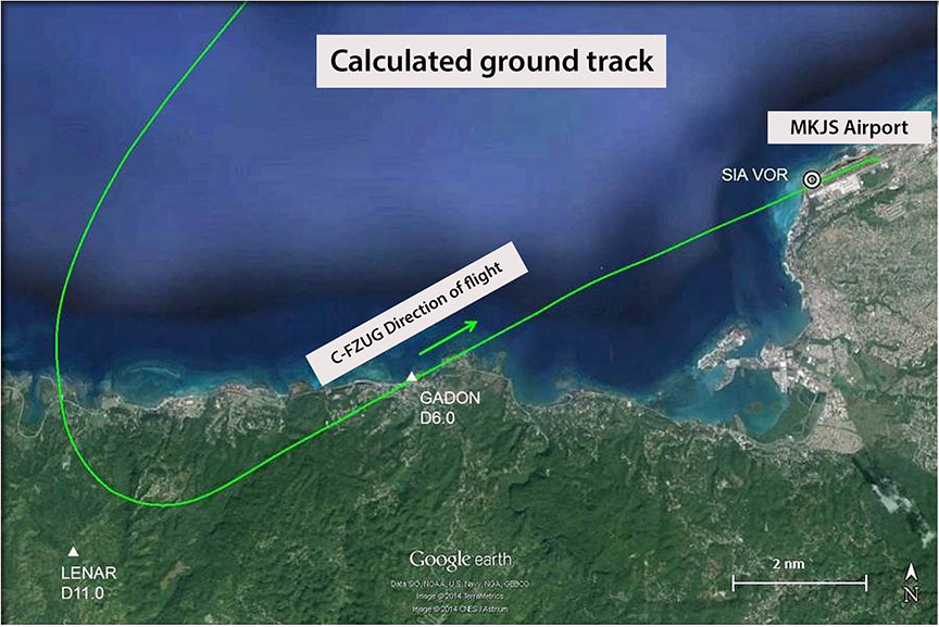 At 1415, approach air traffic control (ATC) at MKJS asked which specific approach the flight crew preferred, offering the area navigation (RNAV) for Runway 07 or the VOR/DMEFootnote 5 for Runway 07. At this point, the flight crew became aware of a published Notice to Airmen (NOTAM)Footnote 6 specifying that the ILS for Runway 07 was not available. The NOTAM had been included in the company flight release documents before departure but had not been noticed by the flight crew. The crew decided to perform the VOR/DME Runway 07 approach.