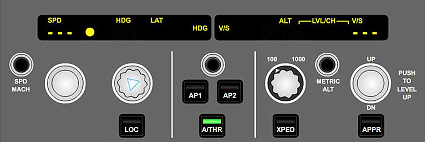 When the autothrust system is active, in THRUST mode (e.g., CLB or IDLE), it maintains a specific fixed thrust level. In SPEED/MACH mode, “the Autothrust varies the thrust so as to maintain target speed, when the AP/FD [autopilot/flight director] guides the aircraft on a given trajectory (e.g., V/S [vertical speed], ALT [altitude], G/S [glideslope] modes).”Footnote 20