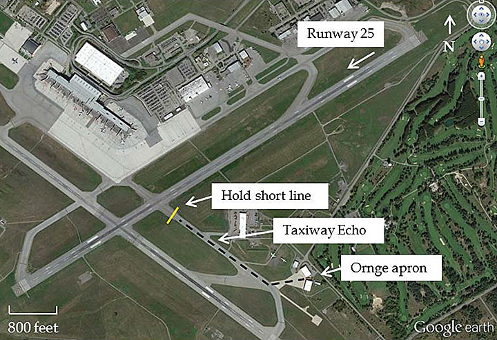Figure 1. Ottawa Macdonald-Cartier International Airport (Source: Google Earth, with TSB annotations)