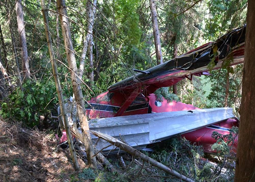 Kennedy Lake has a narrow middle section and wider open water areas at both ends of the lake. The lake is oriented on a 300/120º magnetic heading, with rising tree-covered terrain on either side of the shoreline. At the accident location (Figure 1), the height of the slope above the lake surface was approximately 50 feet, with trees of approximately 30 feet in height. The aircraft came to rest approximately 30 feet above the water surface. The width of the lake at the landing site was estimated to be 170 feet. The aircraft's wingspan is 48 feet, which leaves approximately 60 feet between the wingtip and the shoreline on either side of the aircraft. The topography surrounding Kennedy Lake directly affects wind conditions and causes wind direction to shift rapidly, especially in gusty conditions. This becomes more noticeable when an aircraft descends below the tree line or is on the lake surface.
