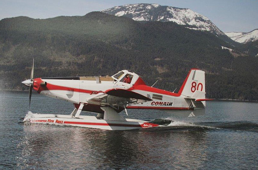 The new aircraft, as received by Conair, was equipped with the Wipaire Fire Boss STC and the PT6A-67F engine model, but rated at 1424 SHP, which is an Air Tractor option.