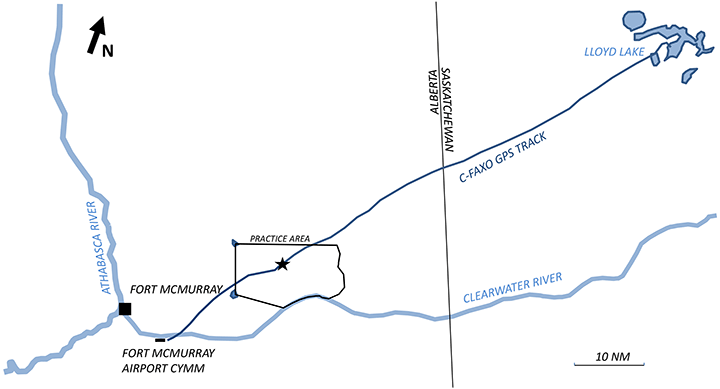 The practice area northeast of CYMM is not a designated advisory area. Before 2006, McMurray Aviation's flight training unit (FTU) had its students and instructors practise to the west of CYMM. However, this practice area was in the middle of a very busy corridor between Edmonton and the airports located among the various oil sands projects. Following discussions between the FTU and the NAV CANADA Flight Service Station in late 2009, it was agreed that the FTU practice area would move to its current location northeast of CYMM. The current area was well known to pilots who operated regularly out of CYMM, including the pilot of FAXO, who received his flight training in the current practice area.