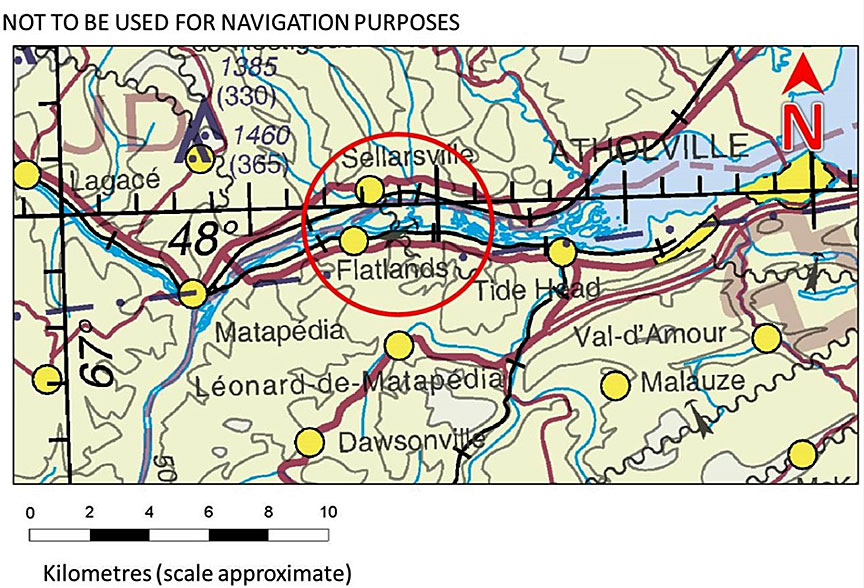 The Chicoutimi VNC did show segments of the power transmission line, but only the small portion over the Restigouche River at Flatlands–Long Island was marked due to the limited space on the VNC and the other prominent features included (Figure 3).