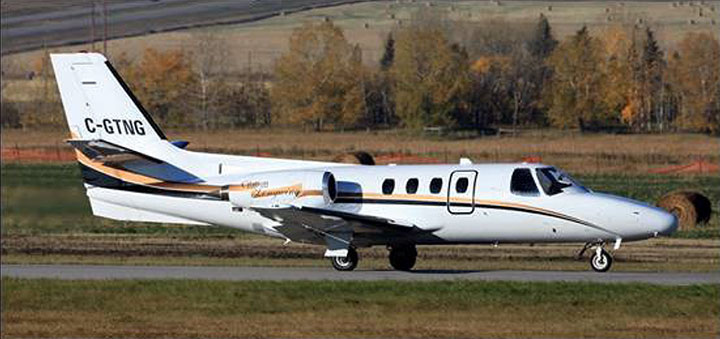 The C500 (Figure 4) is a pressurized turbo-fan–powered business and corporate aircraft with a maximum operating altitude of 35 000 feet ASL and retractable landing gear. The occurrence aircraft was approved for day and night visual flight rules (VFR) and IFR operations and was certified for flight into known icing conditions. The occurrence aircraft (C-GTNG) was also equipped with an autopilot (Bendix FSG-70) and an angle-of-attack indicator.