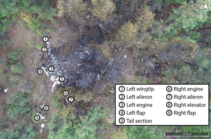 - Given that all components of the aircraft were accounted for at the wreckage site, the investigation concluded that there was no in-flight breakup or separation of the wing.