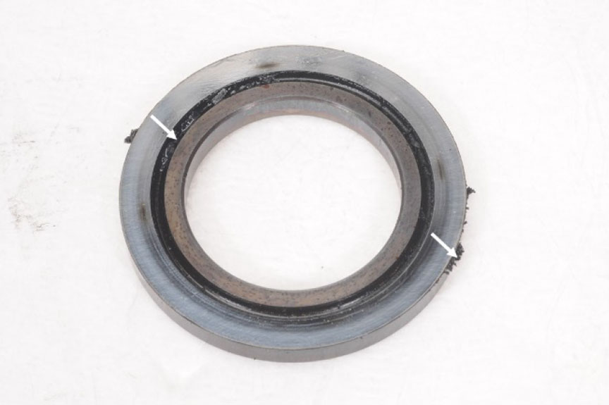 Engine oil seals are used to prevent oil from leaking around rotating shafts and out of the engine. The rear turbine air-oil seal assembly consists of 2 parts: a stationary seal (part number 896494-3) (Figure 2) and a rotor seal (part number 896549-2) (Figure 3). The stationary seal consists of a carbon seal, which is attached to a bellows and is mounted to the rear turbine bearing support assembly. The rotor seal is made of steel and has a machined flat surface that rotates along with the turbine shaft. Both are located in the rear oil scavenge housing. In operation, the bellows' spring action, combined with a negative pressure inside the scavenge housing, forces the carbon seal against the rotor seal, providing an oil seal.