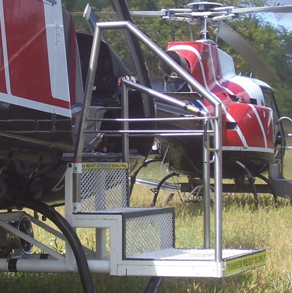 The helicopter was equipped with a platform (known as an Air Stair) to allow PLTs to get onto and off transmission towers and poles while the helicopter is in flight, hovering next to the tower or pole.
