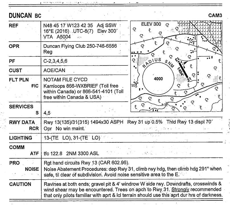 Appendix A – Canada Flight Supplement entry for Duncan Airport (CAM3)