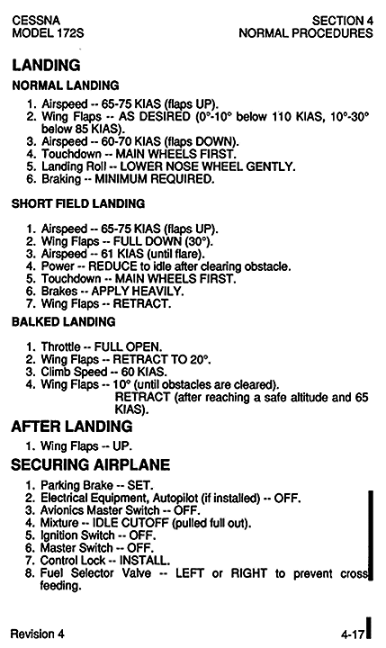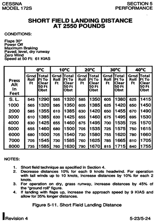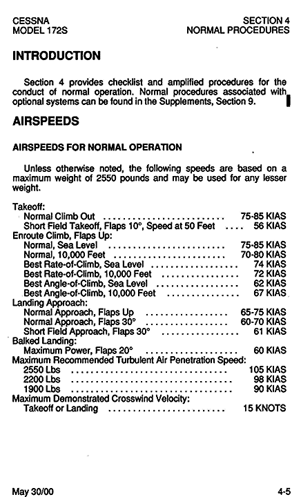 Source: Cessna Aircraft Company, Pilot's Operating Handbook and FAA Approved Airplane Flight Manual—Cessna Model 172S Serial Numbers 172S8001 and On, Revision 5 – 19 July 2004