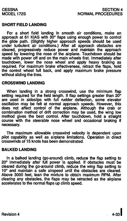 Appendix B – Cessna 172S Pilot's Operating Handbook, short-field landing information
