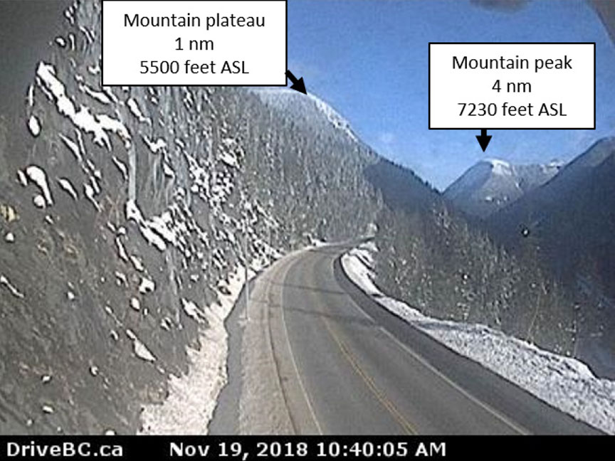 In the mountainous regions of British Columbia, VFR routes may be depicted on visual navigation charts (VNC) by diamonds. The occurrence flight path followed the depicted VFR route along the Trans-Canada Highway from Revelstoke toward Rogers Pass. According to the Transport Canada Aeronautical Information Manual,