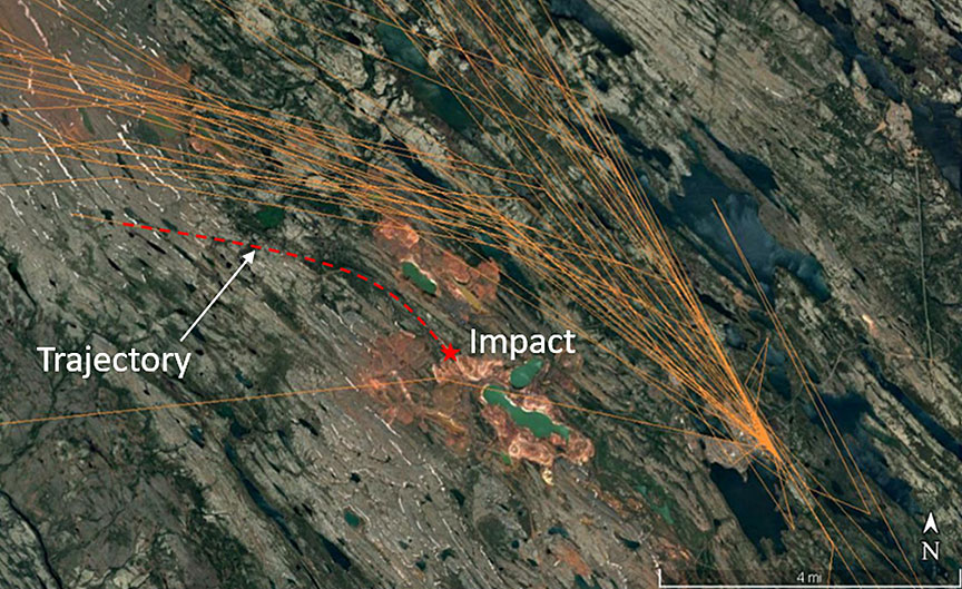 After striking the wires, the aircraft remained airborne and deviated to the left before colliding with the ground, close to the top of the ascending slope of the mine tailings deposit, on the east side, approximately 1400 feet southeast of the impact with the power transmission line.