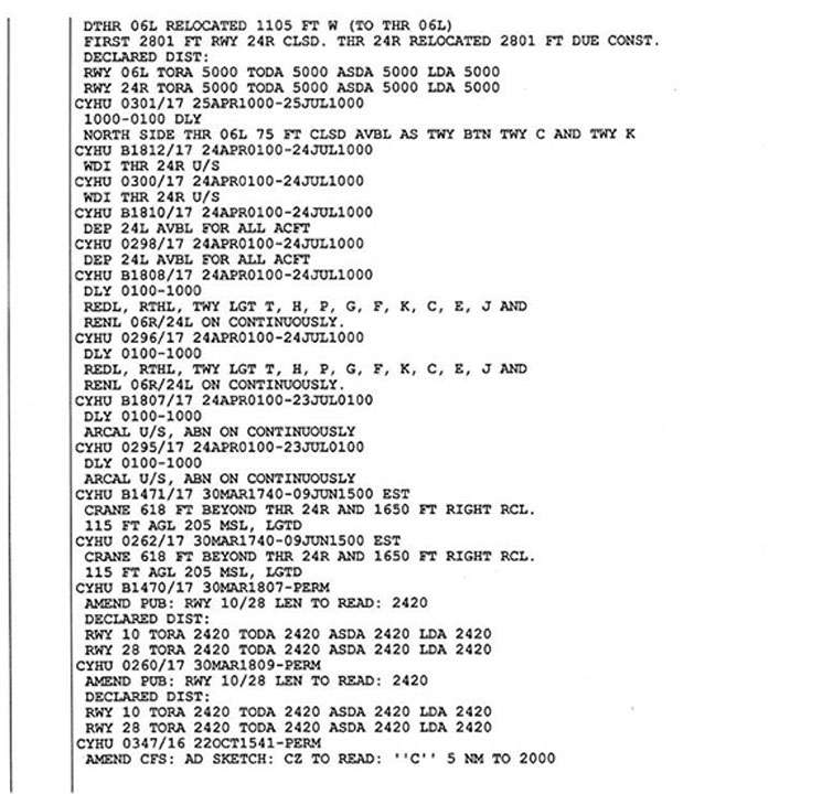 In this occurrence, the flight crew had all of this information before departing KTEB and had read it. However, the investigation was unable to determine when the flight crew had reviewed the relevant information, including the NOTAMs pertaining to the construction work on CYHU's Runway 06L/24R.