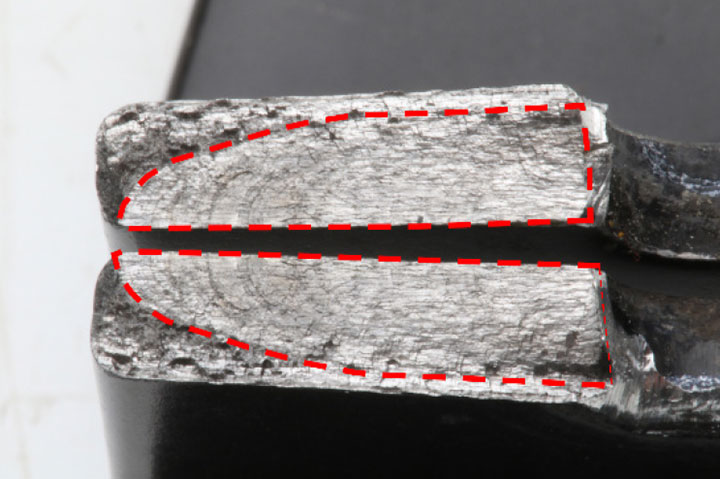 - Arced beach marks indicate that the edge of the bolt hole being the origins of the fatigue. The number of beach marks also indicated that the fatigue had begun some time before the occurrence, although the exact timeframe could not be determined (Figure 5).