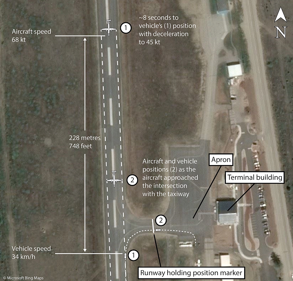 During this occurrence, the aircraft and the truck had come within 228 m of each other (Figure 1). The aircraft passed the taxiway intersection approximately 4 seconds after the truck entered the taxiway.