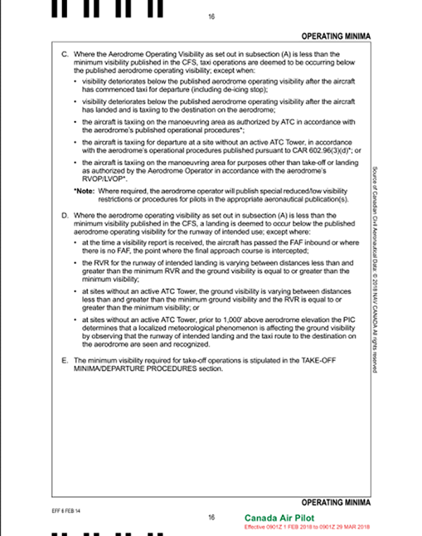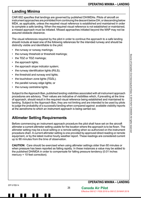 The Department of Transport review and simplify operating minima for approaches and landings at Canadian aerodromes.
