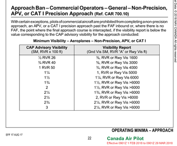 - If Transport Canada does not clarify the application of operating visibility and visibility minima for approach bans, flight crews may proceed with an approach that is actually banned, thereby increasing the risk of an approach-and-landing accident.