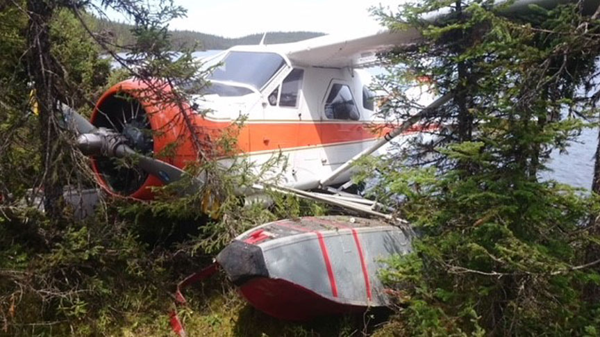 Once take-off speed was reached, the pilot manoeuvred to lift the floats off the water. However, the pilot considered that the remaining distance on the lake was insufficient to complete the takeoff and climb safely, and therefore decided to shut off the engine to reject the takeoff. The aircraft continued straight ahead and could not be stopped in time to avoid colliding with trees (Figure 1). The emergency locator transmitter (ELT) activated on impact, and the 1st signal was received by the Joint Rescue Coordination Centre (JRCC) in Halifax, Nova Scotia, at 1023.