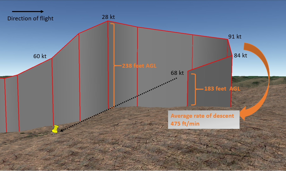 An analysis of the GPS and Vehicle and Engine Multifunction Display data, and an examination of the crash site, suggest that the student pilot maintained control of the helicopter until the collision with the trees. In fact, the investigation found no evidence of spatial disorientation following the loss of visual reference to the ground. It is reasonable to believe that, in the moments leading up to the collision, the student pilot was focusing his attention forward and outward (rather than inside the cockpit). It is likely that, at the time, he had difficulty accurately assessing the helicopter’s high speed and rate of descent, possibly because of the sloping ground. Also, the possible presence of low-lying clouds may have contributed to the difficulties the pilot encountered, making the horizon (the visual line between the ground and sky that enables pilots to determine their position and their spatial movements) less visible. The low altitude and the high speed and rate of descent did not give the student pilot much time to react and avoid a collision. The helicopter’s collision with trees following a rapid descent resulted in a violent impact with the ground. However, it was not possible to determine why the student pilot executed a turn and a rapid descent.