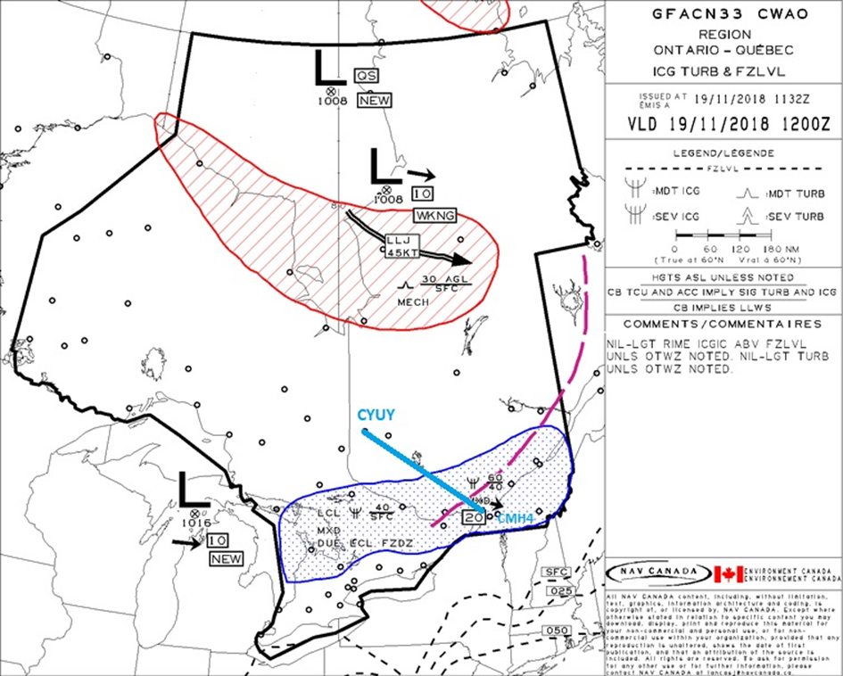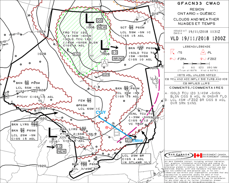 Appendix B — Graphical Area Forecast: “Clouds and Weather” for Ontario-Québec region issued at 0631, 19 November 2018