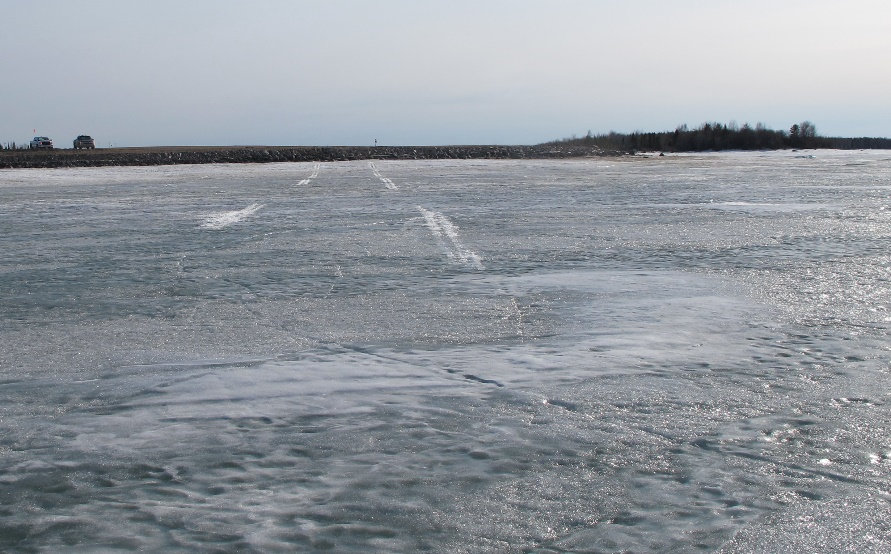 The flaps remained up throughout the approach and subsequent landing. The crew selected the landing gear DOWN when the aircraft was at about 50 feet AGL and the aircraft touched down on the frozen surface of Stephens Lake with the landing gear fully extended (Figure 2).