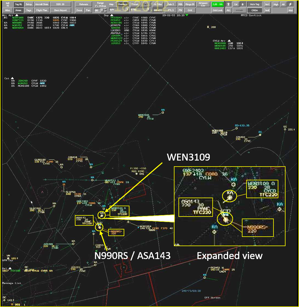 - The incomplete scan of flight plan information, combined with high workload and a visually cluttered Canadian Automated Air Traffic System Situation Display, resulted in the combined Kamloops and Kelowna sector controller developing an incomplete and inaccurate mental representation of the situation. This resulted in the controller being unaware that the trajectories of the Piaggio and the Bombardier DHC-8-402 (Q400) at the same altitude would soon lead to a loss of separation.