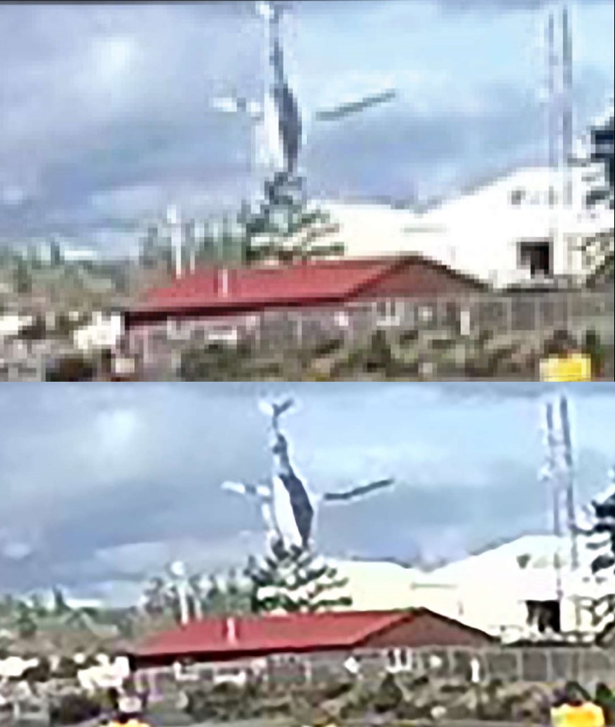 Contrary to the calculated 110% main rotor rpm, eyewitnesses observed erratic helicopter movement and slow main rotor rpm. Also supporting the existence of slow main rotor rpm is the relatively light damage from the main rotor strike on the tail rotor drive shaft cover. Lastly, in the analysis of the security camera video, the main rotor blades showed no rotational movement.