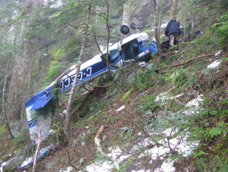 The wreckage was found at approximately 2600 feet ASL on a steep, densely wooded mountainside, 31 nautical miles (NM) northwest of Tofino/Long Beach Airport (CYAZ), BC. The damage was consistent with a low-energy impact (Figure 2).