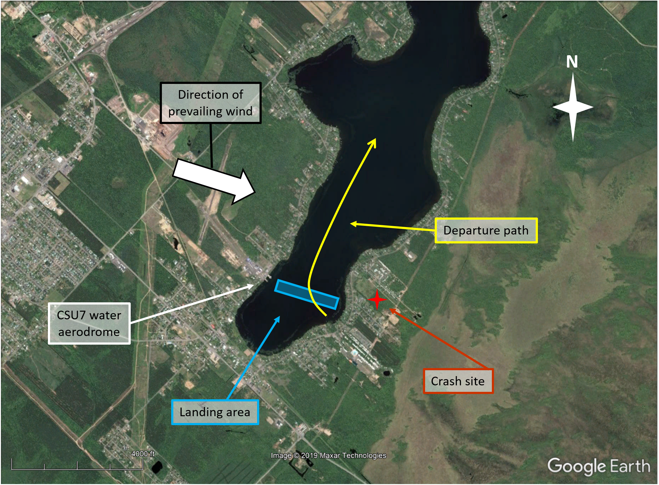 The pilot then conducted his first 2 afternoon flights. He took off in a northeasterly direction, following a departure path that provided a greater distance of the lake’s surface than a takeoff fully into the wind (Figure 1). After flying his usual flight path, he returned and landed in a northwesterly direction, into the prevailing wind.