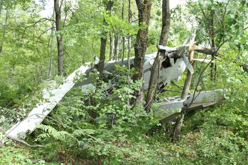 The area surrounding the wreckage, approximately 1000 feet southeast of the lake, was a woodland with large, deciduous trees. The first signs of an impact with trees could be found approximately 250 feet southeast of the wreckage (Figure 2).
