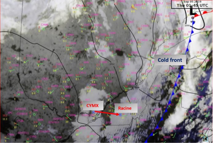 Environment and Climate Change Canada performed an in-depth analysis of the weather conditions affecting the Racine, Quebec, area at the time of the occurrence.Footnote 8 The following sections of the report are based on Environment and Climate Change Canada’s analysis as well as aviation weather information available to pilots on-line or by communicating with a flight service specialist.