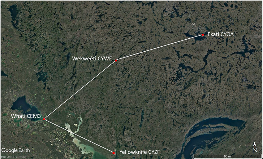 - The 2nd leg was from CEM3 to Wekweètì Airport (CYWE), Northwest Territories.