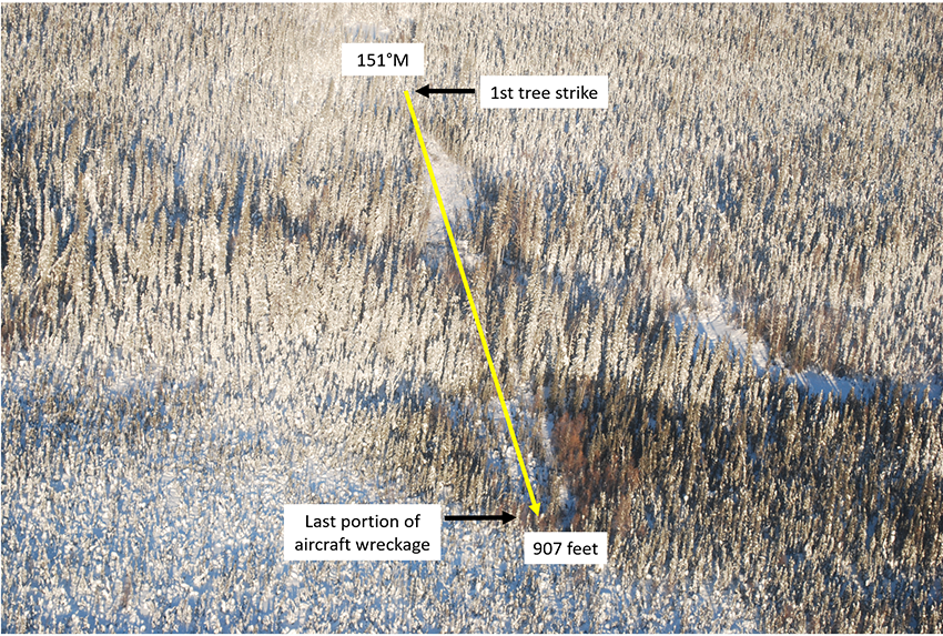 At 0851 Mountain Standard Time on 30 January 2019, the Air Tindi Ltd. Beechcraft King Air 200 aircraft (registration C-GTUC, serial number BB-268) departed Yellowknife Airport (CYZF), Northwest Territories, as flight TIN503, on an instrument flight rules flight itinerary to Whatì Airport (CEM3), Northwest Territories, with 2 crew members on board. At 0912, as the aircraft began the approach to CEM3, it departed controlled flight during its initial descent from 12 000 feet above sea level, and impacted terrain approximately 21 nautical miles east-southeast of CEM3, at an elevation of 544 feet above sea level. The Canadian Mission Control Centre received a signal from the aircraft’s 406 MHz emergency locator transmitter and notified the Joint Rescue Coordination Centre in Trenton, Ontario. Search and rescue technicians arrived on site approximately 6 hours after the accident. The 2 flight crew members received fatal injuries on impact. The aircraft was destroyed.
