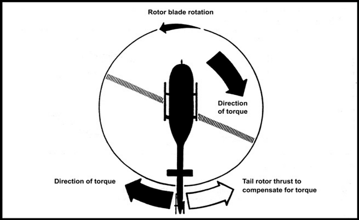 When seen from above, the main rotor blades of the Robinson R44 turn counterclockwise. Due to this rotation, the helicopter experiences a torque reaction in the opposite direction, which results in the helicopter yawing to the right (Figure 2).