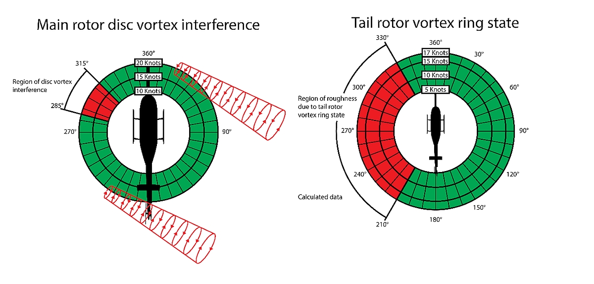 - main rotor disc vortex wind (winds from 285° to 315° relative to the helicopter);