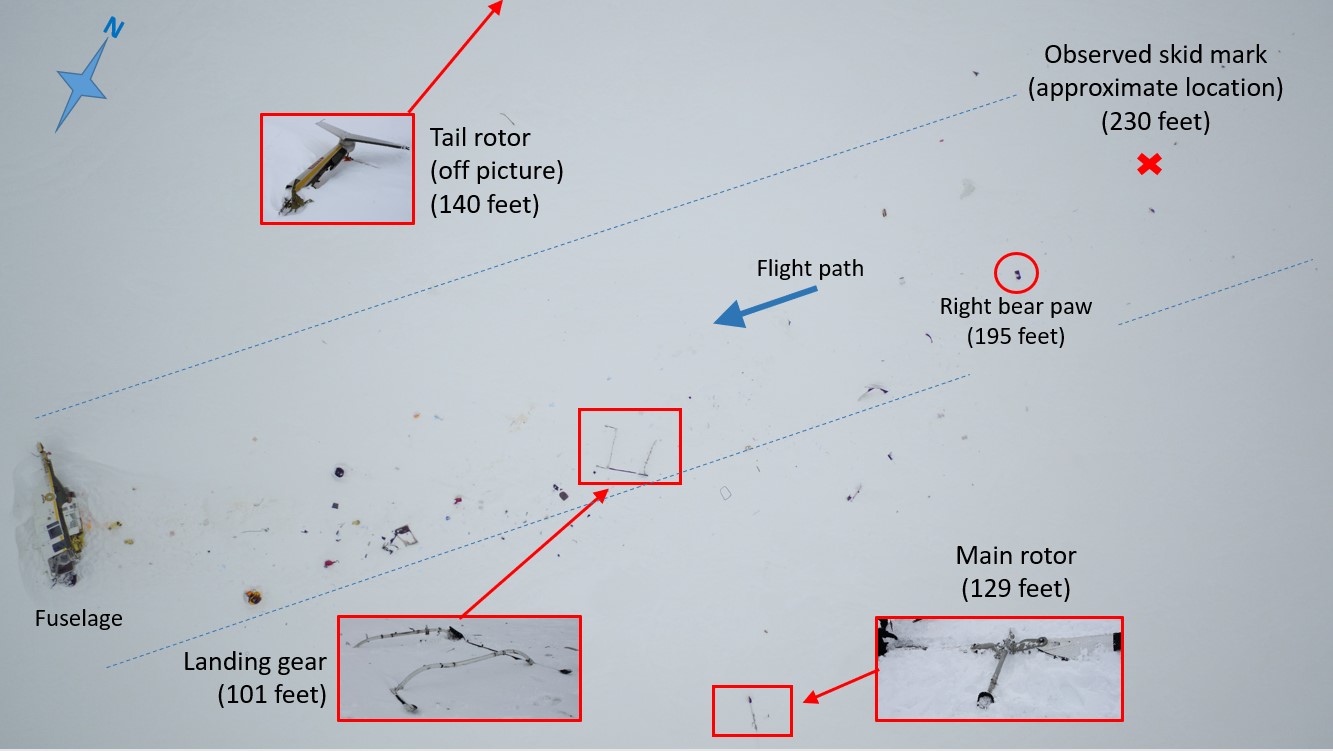 Although he was seriously injured, the pilot was able to egress from the aircraft and call the dispatcher to report the accident. At 1412, the dispatcher called the pilot of the 2nd helicopter, who had remained at Saint-Henri-de-Taillon, and asked him to rescue the injured pilot. Two Sûreté du Québec (SQ) first responders were notified and accompanied the rescue pilot. The aircraft touched down at the accident site at 1445. It then took off again at 1500 with the injured pilot on board and headed to the Roberval Airport (CYRJ), Quebec, where an ambulance was waiting to take the injured pilot to the city’s hospital.