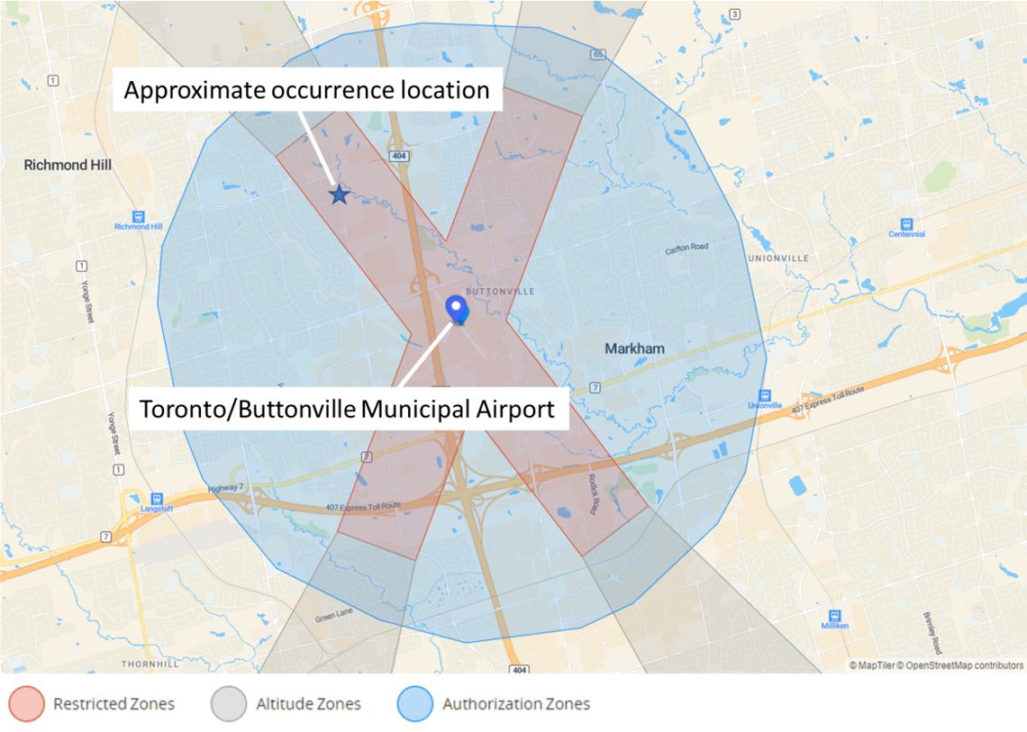 The pilot of the occurrence RPA was aware of the NAV Drone application and knew that the operation on the day of the occurrence would take place entirely within the CYKZ control zone, therefore requiring authorization from ATS.