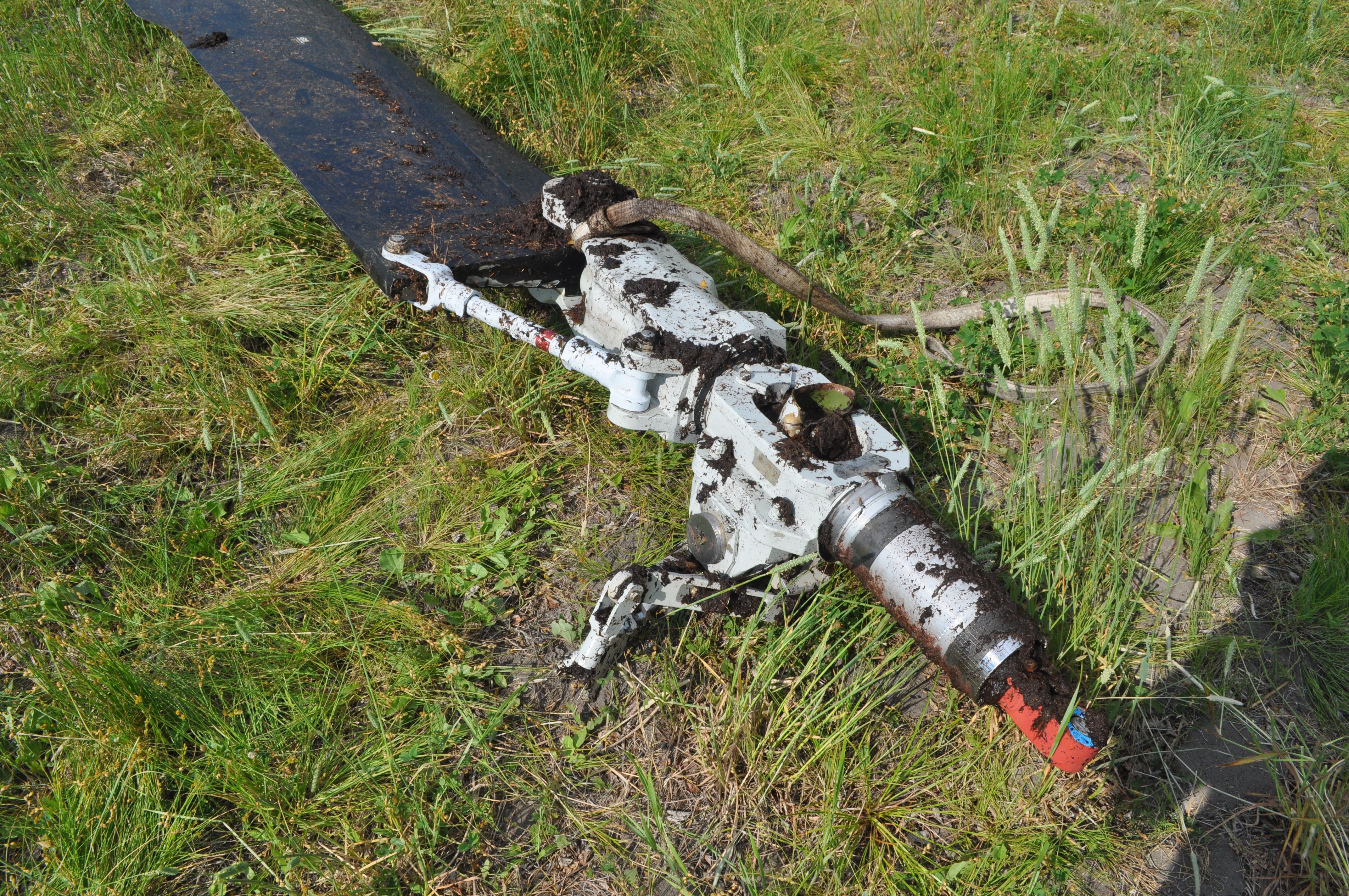 Both main rotor blades were recovered from the muskeg and brought to the staging area where the main rotor blades were removed from their respective blade grips (Figure 5, Figure 6). Investigators observed that the main rotor hub strap retaining pin of blade A had failed. Both grips and the main rotor head assembly were shipped to the TSB Engineering Laboratory in Ottawa, Ontario, for a detailed examination, and metallurgical analysis (see section 1.16 Tests and research).