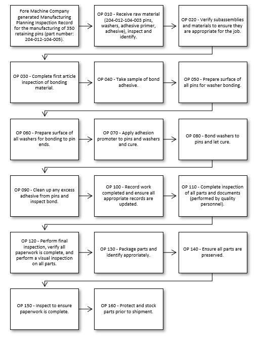 The Fore Machine Company (FMC) initially ordered 8 rods of H11 tool steel to manufacture 350 main rotor hub strap retaining pins. FMC received the 8 rods into its inventory and then recorded all 8 on the work traveller to be used for pin manufacturing.
