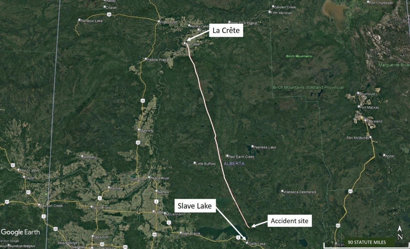 On 31 August 2021, the privately registered Mooney M20C aircraft (registration C-GTIJ, serial number 2901) was conducting a visual flight rules (VFR) flight from La Crête Aerodrome (CFN5), Alberta, to Saskatoon/John G. Diefenbaker International Airport (CYXE), Saskatchewan. The pilot was the sole occupant on board.